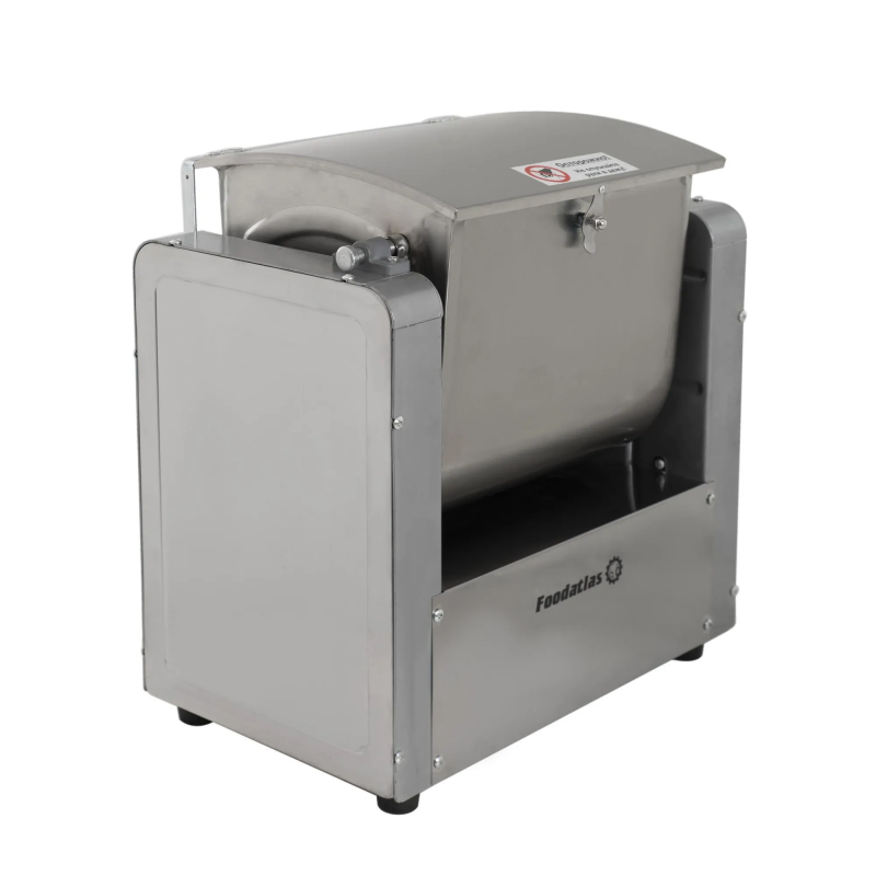 Машина имеет прочную конструкцию из нержавеющей стали, что обеспечивает долговечность и надёжность работы. Она оснащена мощным двигателем и двумя Z-образными лопастями, которые обеспечивают равномерное перемешивание ингредиентов и получение однородного теста без комочков.